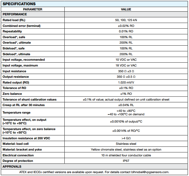 美國(guó)BLH傳感器KIS-11系列產(chǎn)品參數(shù):