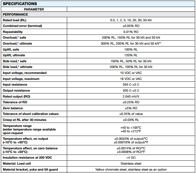 美國BLH傳感器KIS-2系列產(chǎn)品參數(shù):