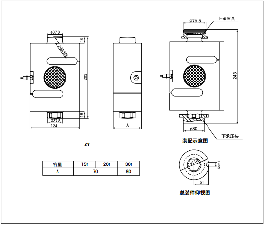 稱重傳感器相關(guān)型號:ZY-15T, ZY-20T, ZY-30T