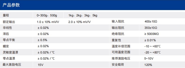 四、LZ4M(L)稱重傳感器技術參數(shù)