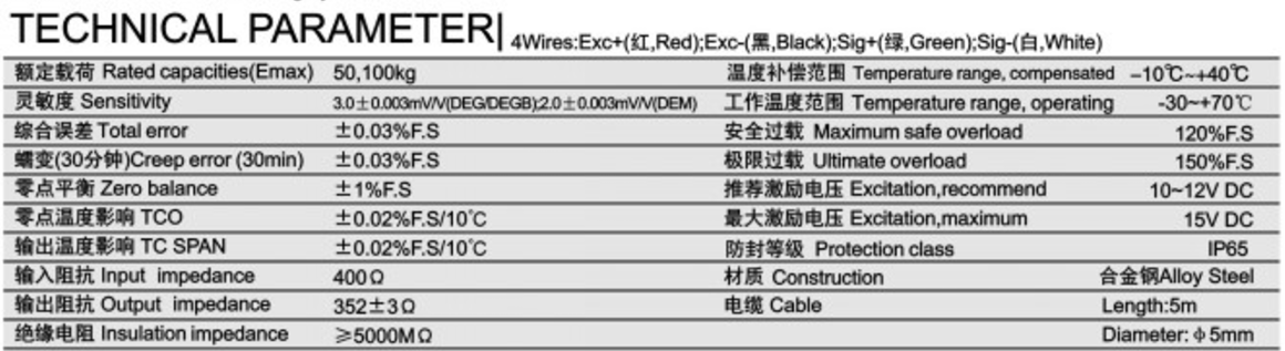 柯力DEG系列稱重傳感器技術(shù)參數(shù)