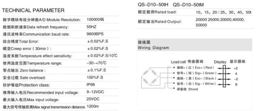 柯力QS-D系列數(shù)字稱重傳感器技術(shù)參數(shù)