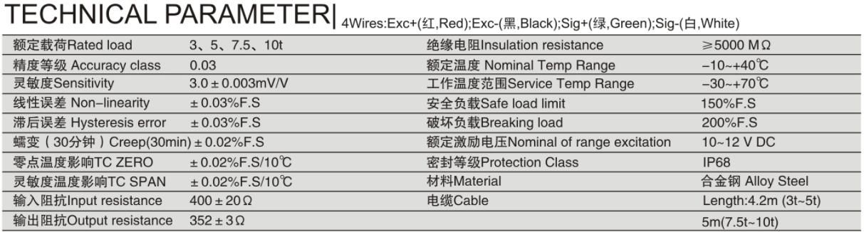 柯力SQB-A系列稱重傳感器技術(shù)參數(shù)