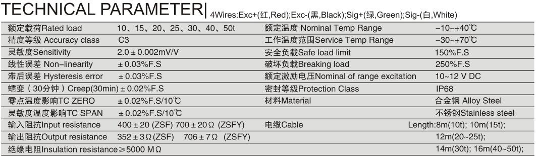 柯力ZSF系列稱重傳感器技術(shù)參數(shù)