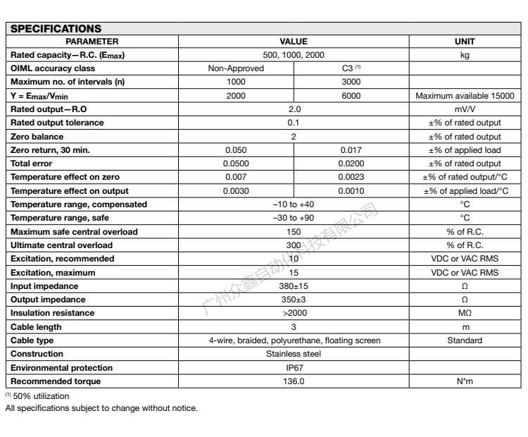 五、美國(guó)特迪亞 3520-2000kg稱重傳感器技術(shù)參數(shù)