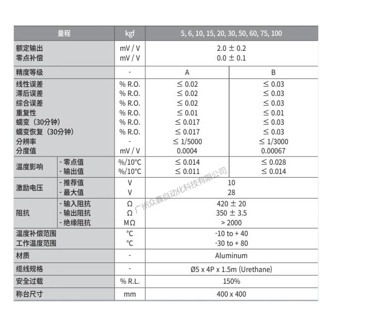 五、韓國凱士CAS品牌 BCA-100L-EXP稱重傳感器技術(shù)參數(shù)
