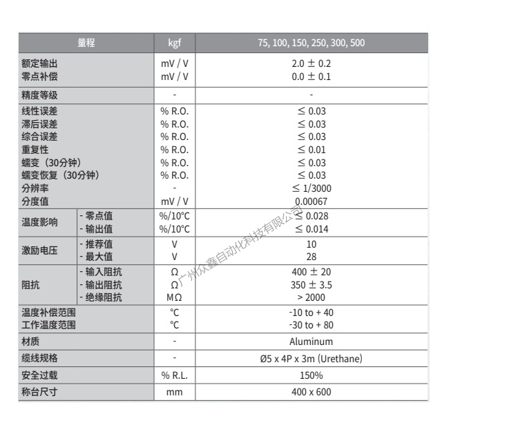 五、韓國凱士CAS品牌 BCD-300L-EXP稱重傳感器技術(shù)參數(shù)
