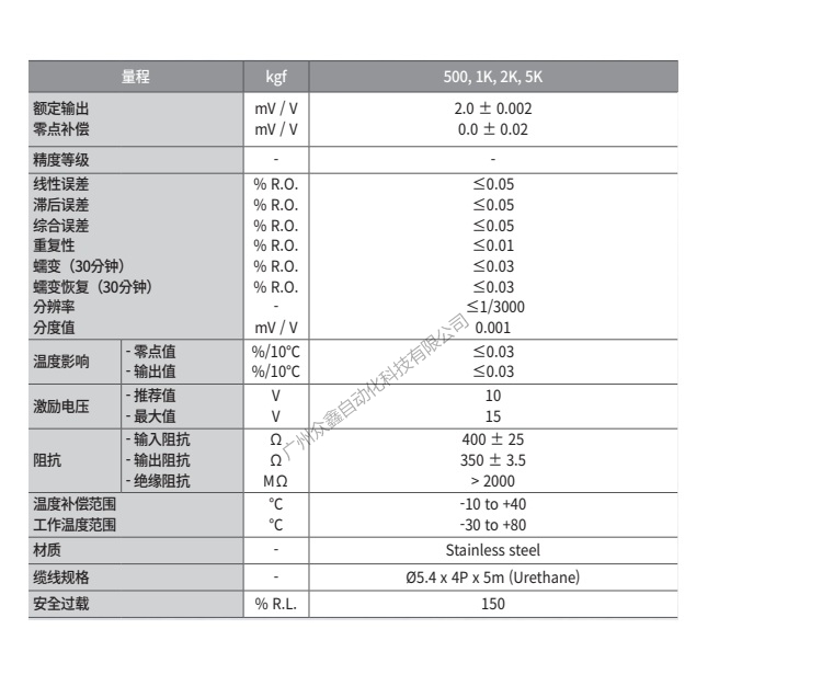 五、韓國凱士CAS品牌 SBS-500L稱重傳感器技術(shù)參數(shù)