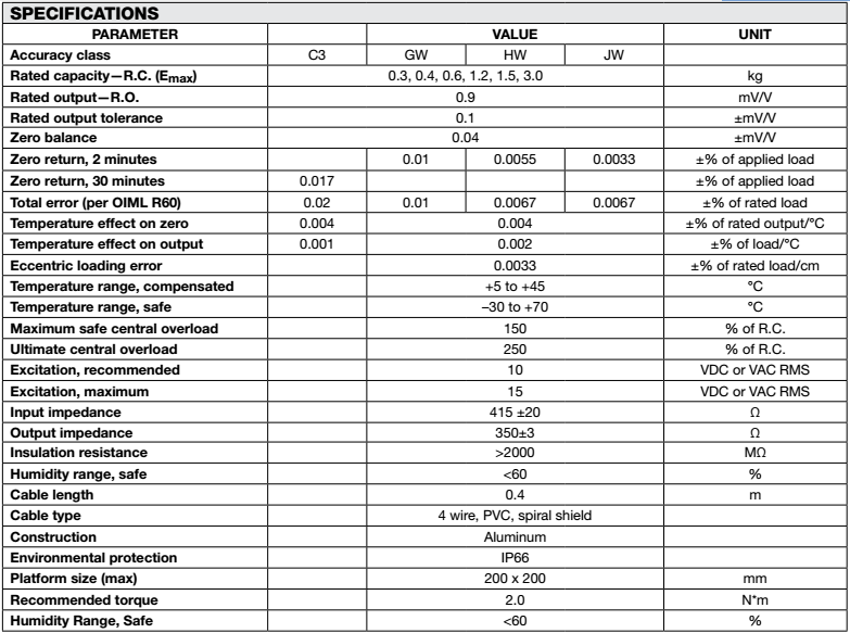 Tedea-Huntleigh特迪亞1004系列技術(shù)指標(biāo)
