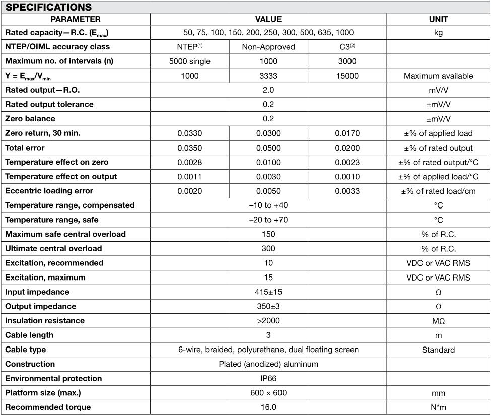 Tedea-Huntleigh特迪亞1260系列技術(shù)指標(biāo)