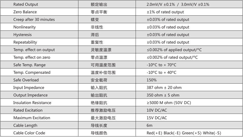 Transcell傳力BSA系列技術參數(shù)