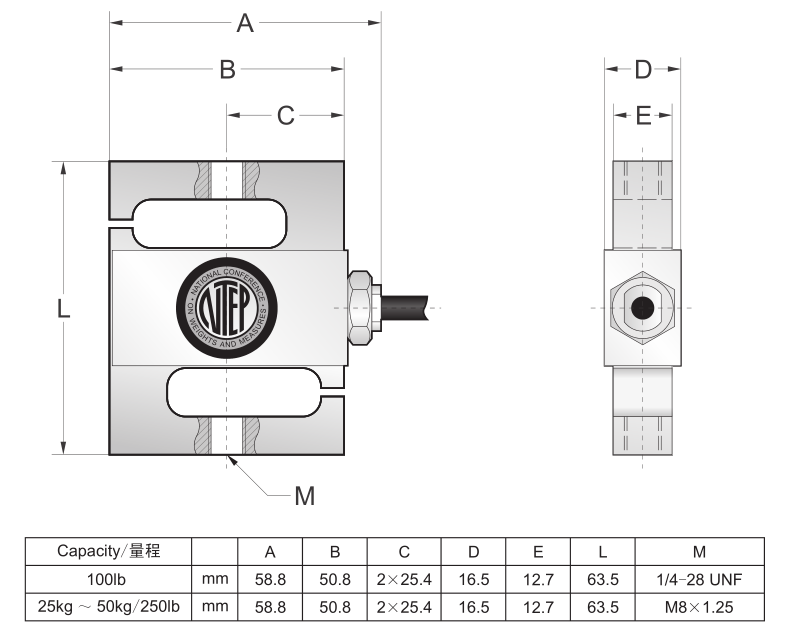 -量程可選:25kg ,50kg; 100lb,250lb