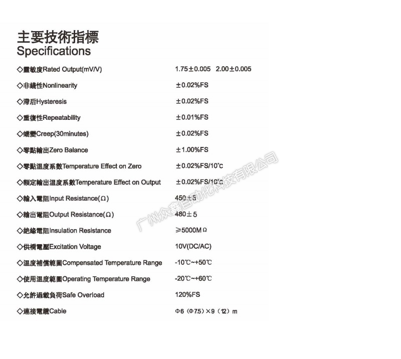 五、美國(guó)AC品牌 CP-1稱重傳感器技術(shù)參數(shù)