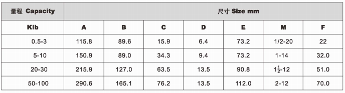 稱重傳感器相關(guān)型號: 1- CP-8-0.5klb, 1- CP-8-3klb, 1- CP-8-5klb, 1- CP-8-10klb, 1- CP-8-20klb, 1- CP-8-30klb, 1- CP-8-50klb, 1- CP-8-100klb,