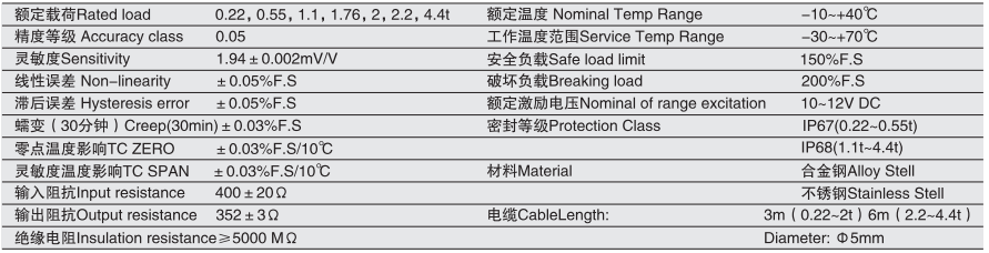 寧波柯力 1-SBT系列技術(shù)數(shù)據(jù)