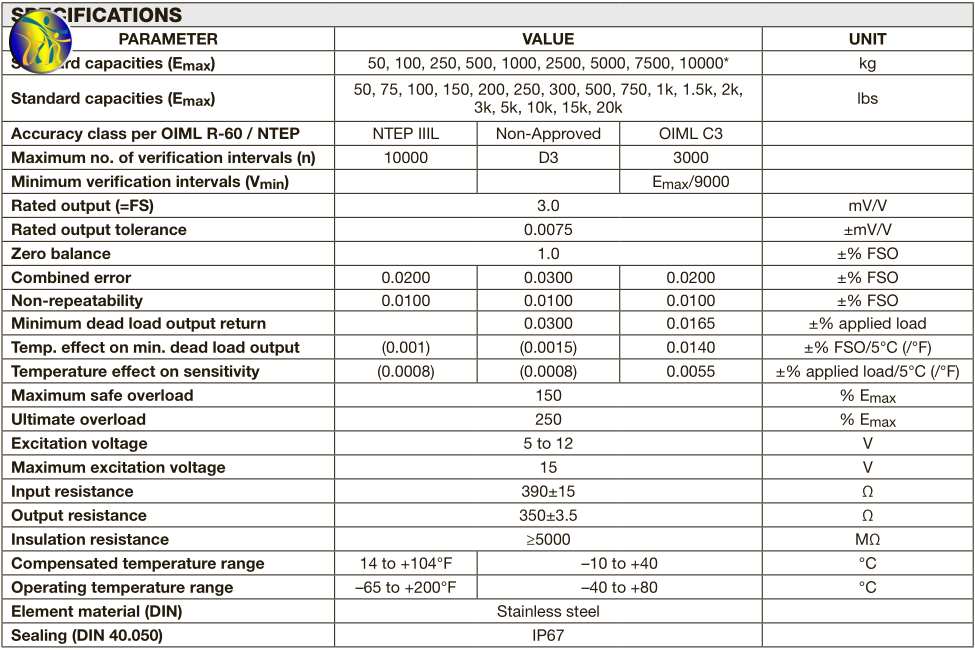 量程范圍:50kg~10000kg(50lbs~20klbs)