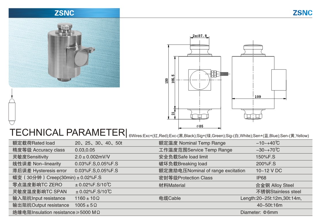 稱重傳感器相關型號: ZSNC-20t, ZSNC-25t, ZSNC-30t, ZSNC-40t, ZSNC-50t
