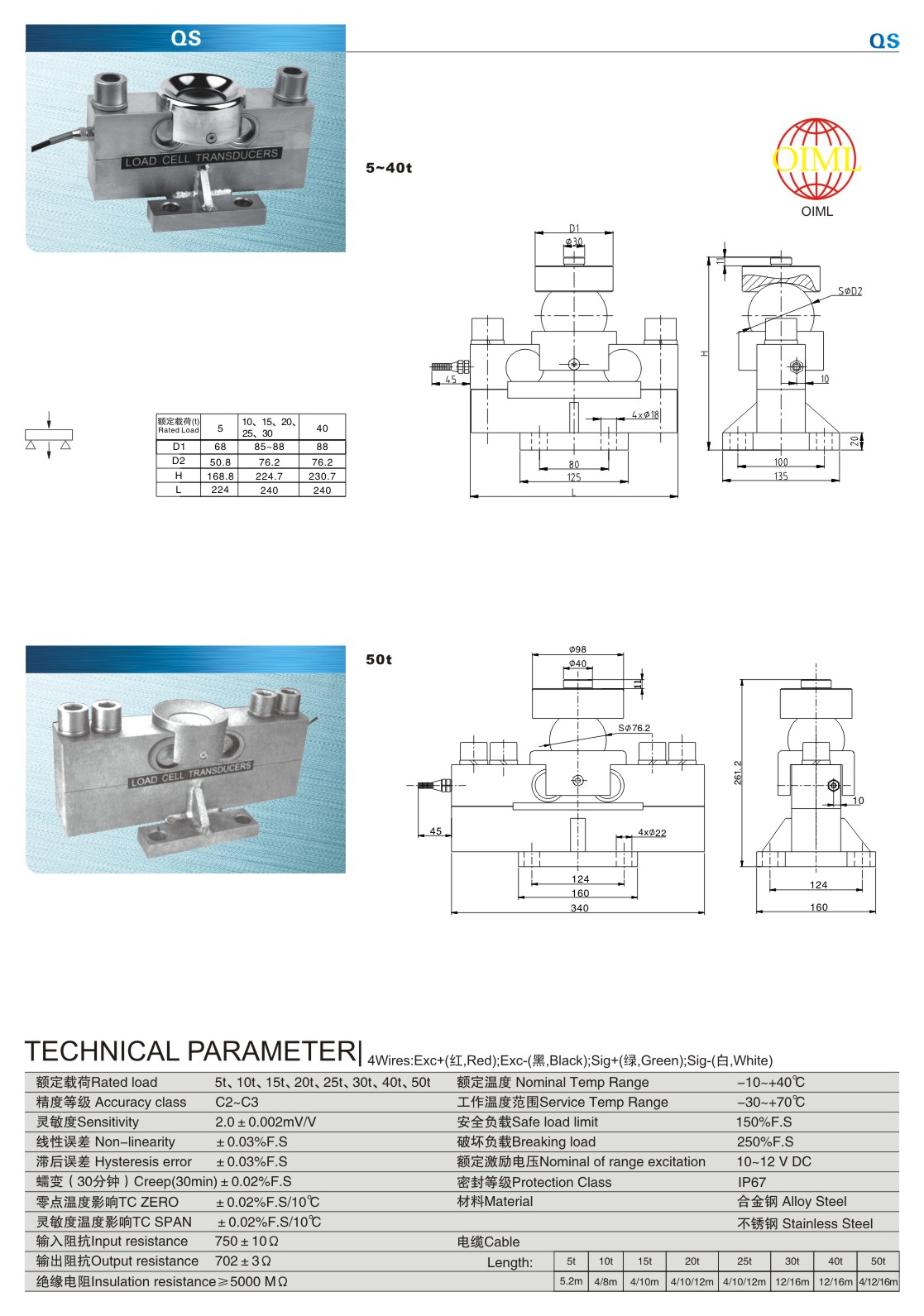 QS-40t傳感器,美國(guó)mkcells QS-40t 稱(chēng)重傳感器
