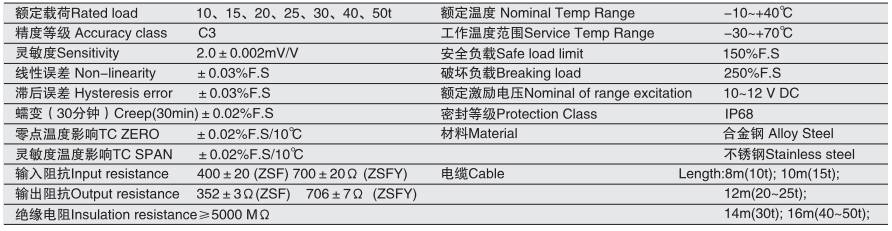 稱重傳感器相關(guān)型號: ZSF-10t, ZSF-15t,ZSF-20t, ZSF-25t, ZSF-30t, ZSF-40t, ZSF-50t