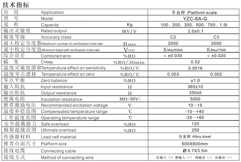 YZC-6A-G-100kg, YZC-6A-G-200kg, YZC-6A-G-300kg, YZC-6A-G-500kg, YZC-6A-G-750kg, YZC-6A-G-1.5t