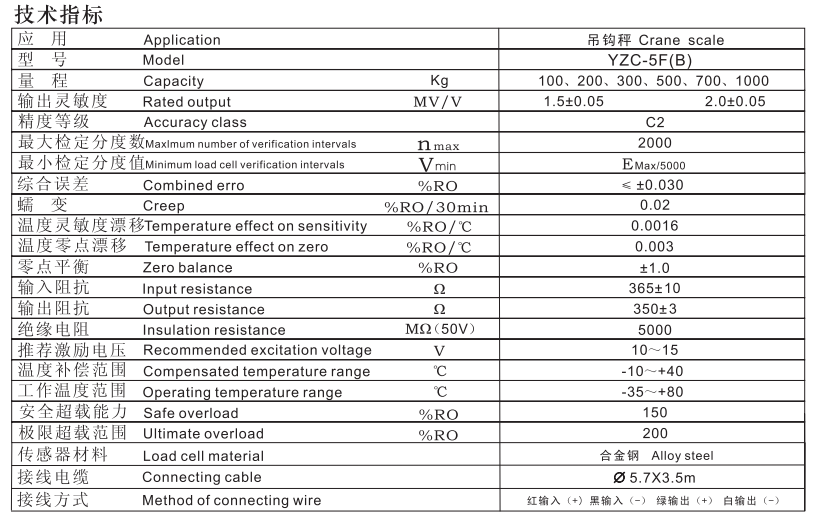 廣州電測(cè)傳感器YZC-526系列產(chǎn)品參數(shù):