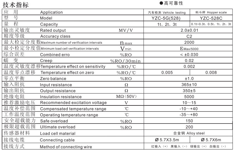 廣州電測傳感器YZC-528C系列產(chǎn)品參數(shù):