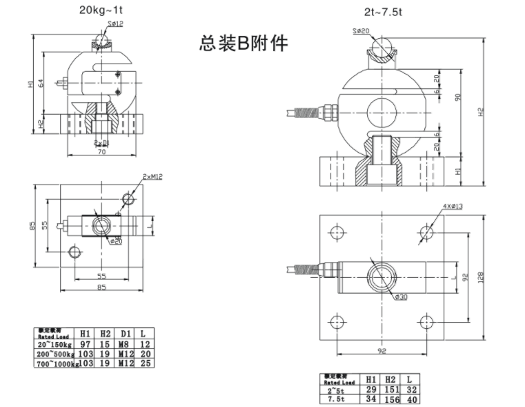 ★量程可選:20kg,30kg,50kg,75kg,100kg,150kg,200kg,250kg,300kg,500kg,700kg,750kg;1t,1.5t,2t,3t,5t,7.5t。