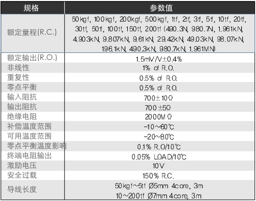 CWW測(cè)力傳感器技術(shù)指標(biāo)