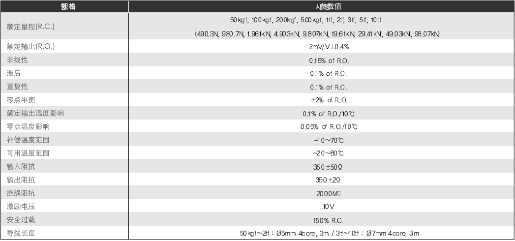 稱重傳感器相關(guān)型號:CM-50kgf, CM-100kgf, CM-200kgf CM-500kgf; CM-1tf, CM-2tf, CM-5tf , CM-10tf。