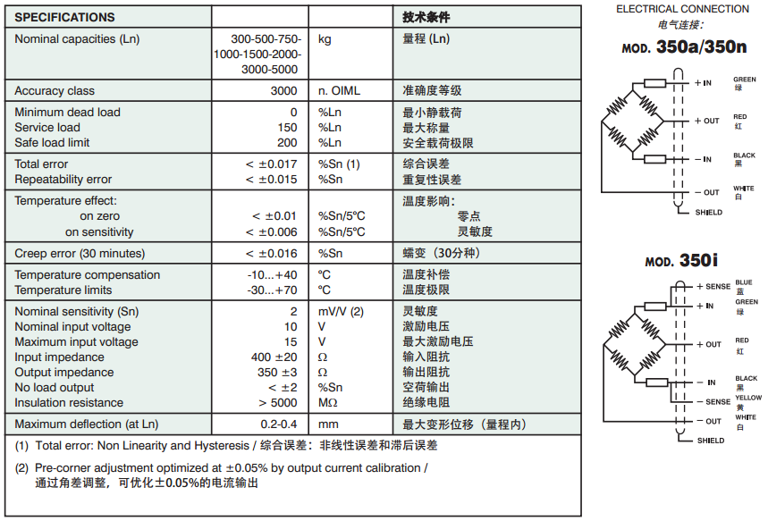 MOD350稱重傳感器技術(shù)指標(biāo)