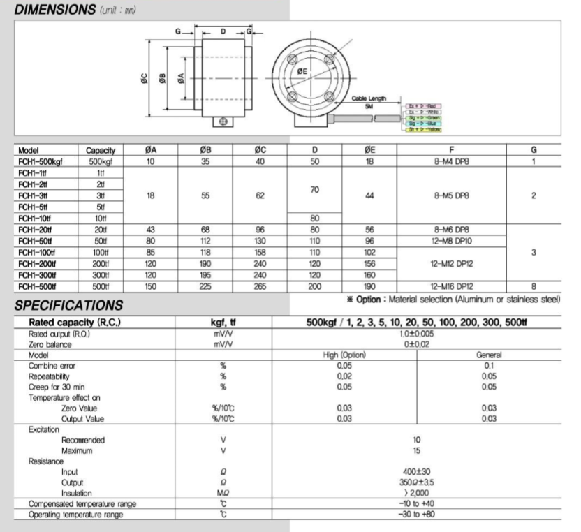 【FCH1傳感器】FCH1-500kgf~500tf_韓國(guó)Fine稱重傳感器