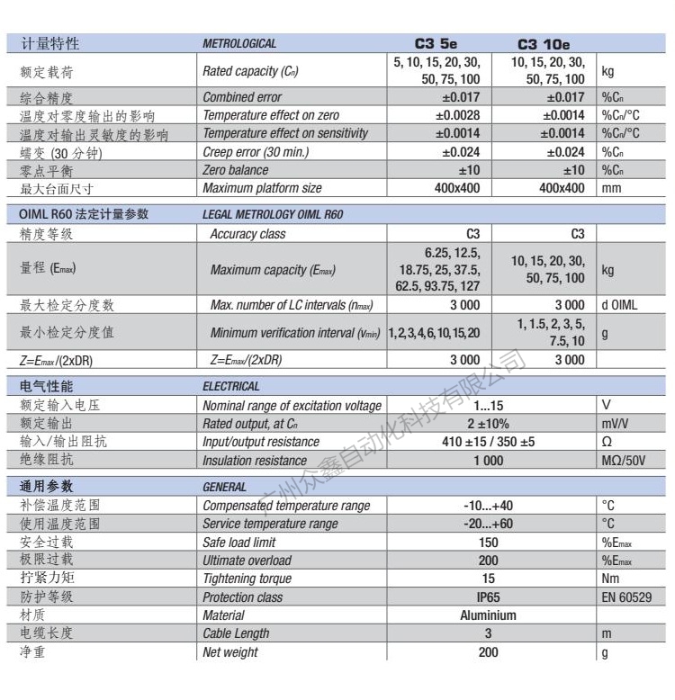 五、法國世感Scaime品牌 AG稱重傳感器技術(shù)參數(shù)