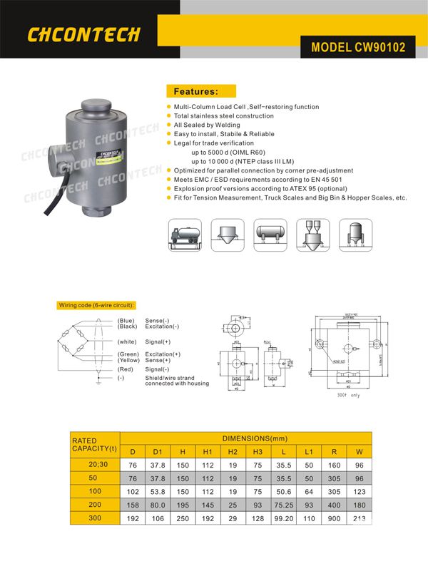 廣州眾鑫自動(dòng)化科技有限公司】專業(yè)供應(yīng)美國(guó)chcontech CW90102系列稱重傳感器,【CW90102柱式傳感器】CW90102-20t~100t_