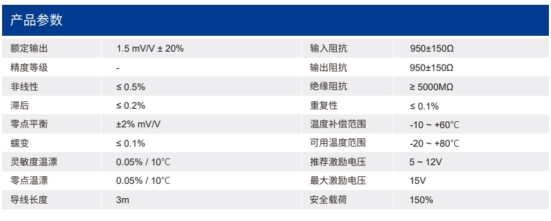 產(chǎn)品量程:50N,100N,200N,500N,1kN,2kN,5kN,10kN,20kN