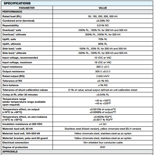?容量范圍:50、100、200、300和500 kN