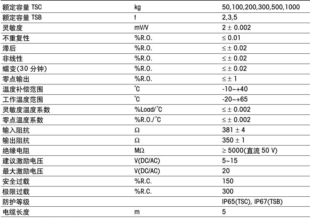 Mettler Toledo梅特勒托利多TSB系列技術(shù)指標(biāo)