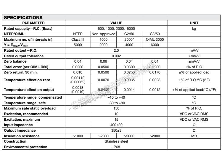 五、美國(guó)特迪亞 620稱(chēng)重傳感器產(chǎn)品技術(shù)參數(shù)