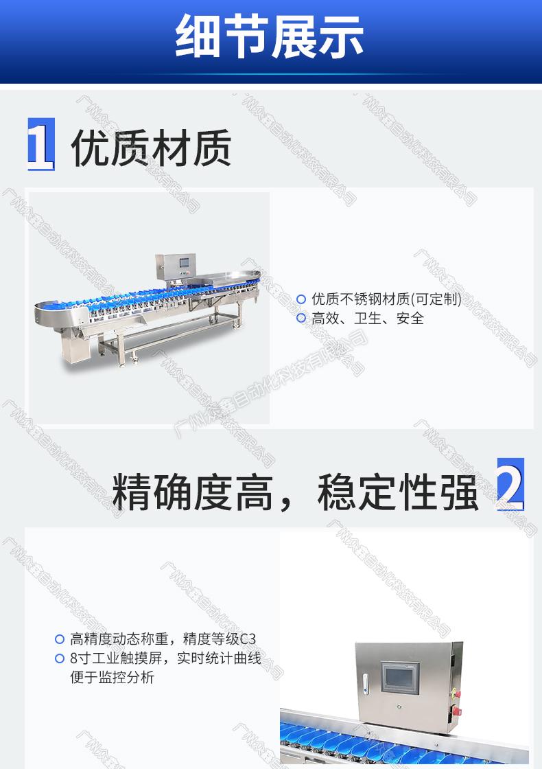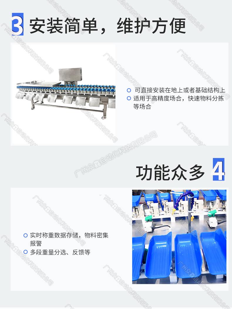 7、本設(shè)備廣泛用于海鮮、水產(chǎn)、禽肉、果蔬、藥材、工業(yè)品、日化等的分選。