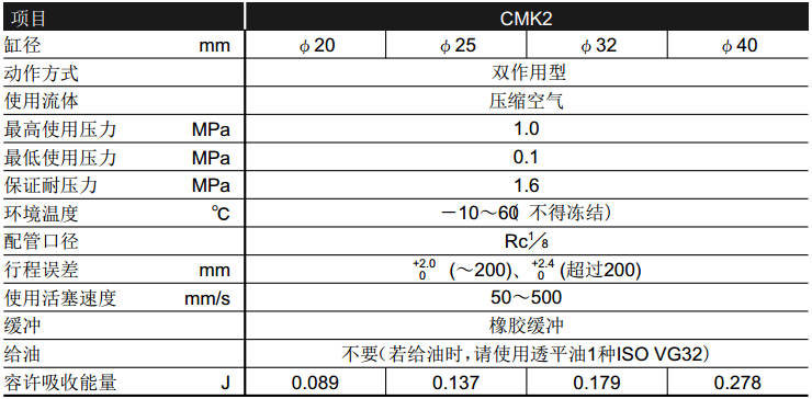 CMK2氣缸產(chǎn)品規(guī)格: