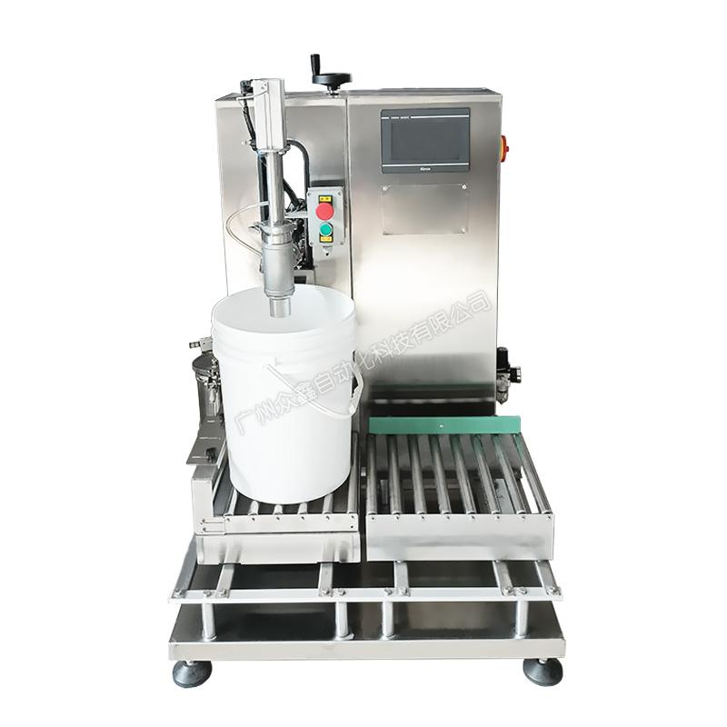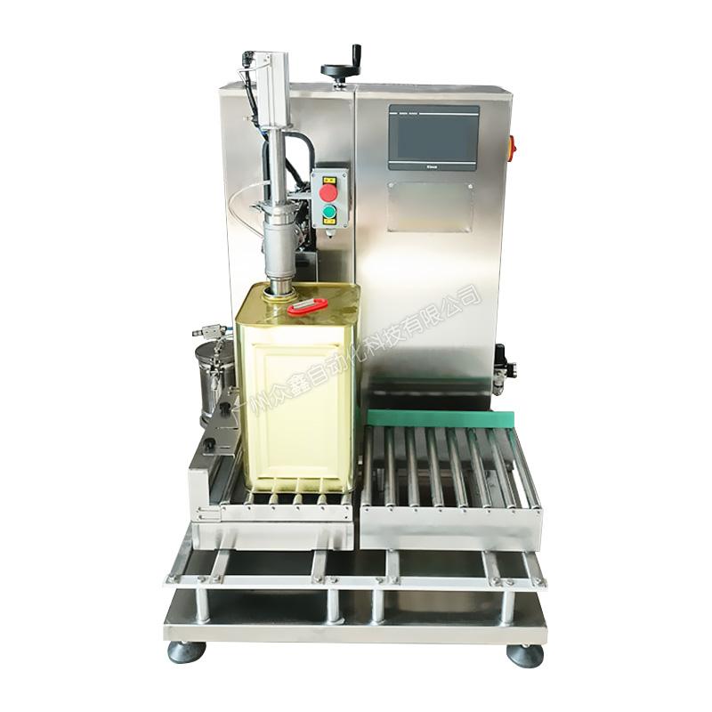 物料自流到灌裝機的進(jìn)口管道,氣動雙閥門控制灌裝流速,先快后慢,稱重式灌裝,灌裝完畢,灌裝嘴不滴漏。機器主體采用不銹鋼材質(zhì)。灌裝容量10-25L。此型號可灌注大部分高低粘度,無顆粒、非爆性液體,廣泛應(yīng)用于潤滑油,液壓油,防凍液,玻璃水,聚氨酯,化妝品日化等行業(yè)。