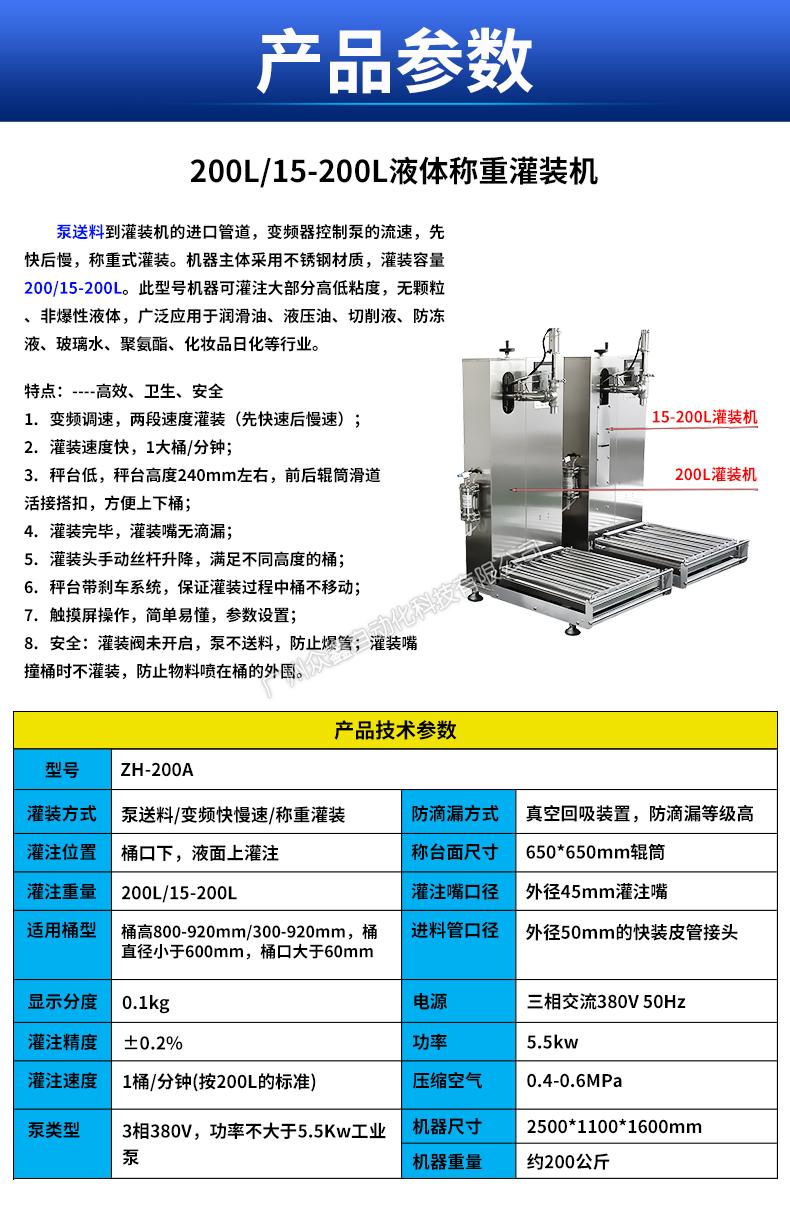 灌裝方式:泵送料/變頻快慢速/稱重灌裝
