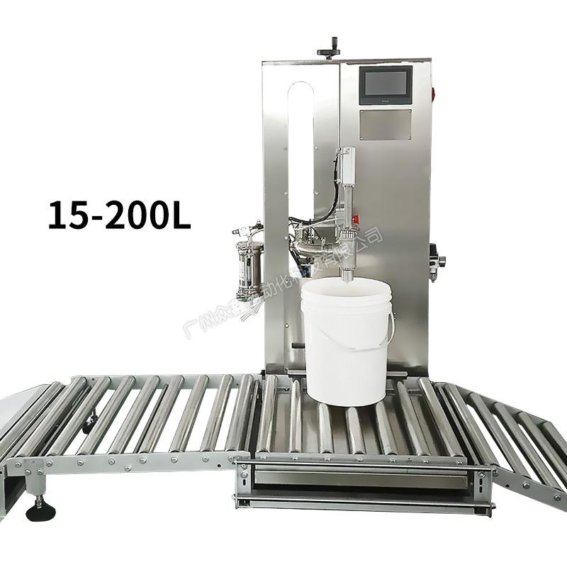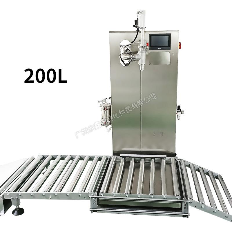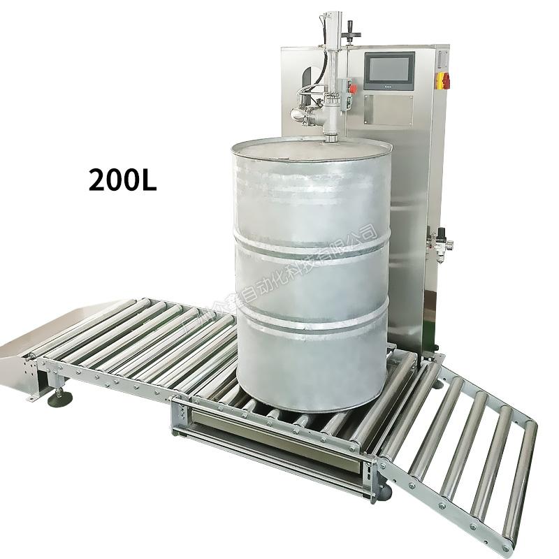 泵送料到灌裝機的進口管道,變頻器控制泵的流速,先快后慢,稱重式灌裝。機器主體采用不銹鋼材質(zhì),灌裝容量200/15-200L。此型號機器可灌注大部分高低粘度,無顆粒、非爆性液體,廣泛應(yīng)用于潤滑油、液壓油、切削液、防凍液、玻璃水、聚氨酯、化妝品日化等行業(yè)。