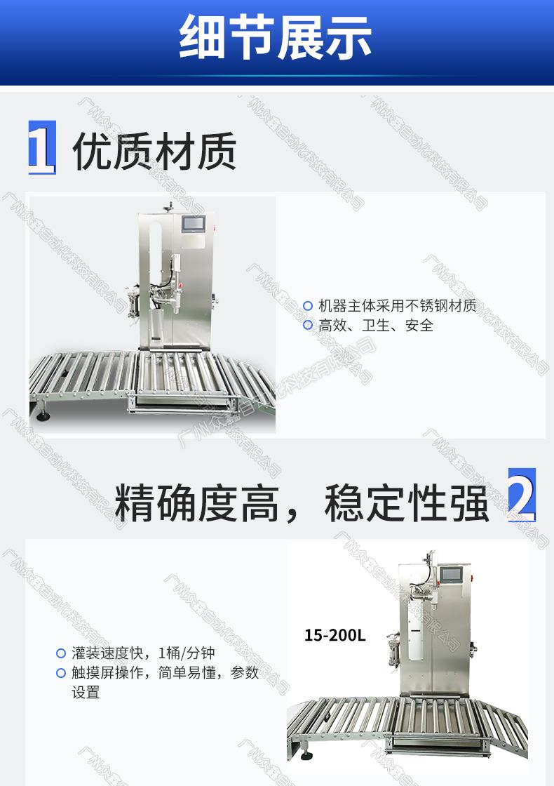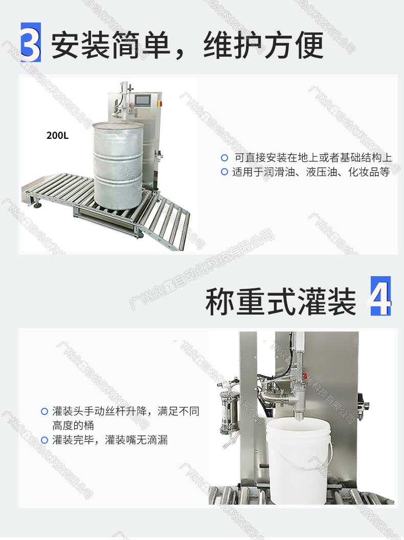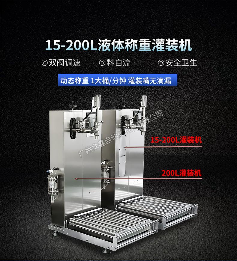 物料自流到灌裝機(jī)的進(jìn)口管道,氣動(dòng)雙閥門灌裝流速,先快后慢,稱重式灌裝。機(jī)器主體采用不銹鋼材質(zhì),灌裝容量200/15-200L。此型號(hào)機(jī)器可灌注大部分高低粘度,無顆粒、非爆性液體,廣泛應(yīng)用于潤(rùn)滑油、液壓油、切削液、防凍液、玻璃水、聚氨酯、化妝品日化等行業(yè)。