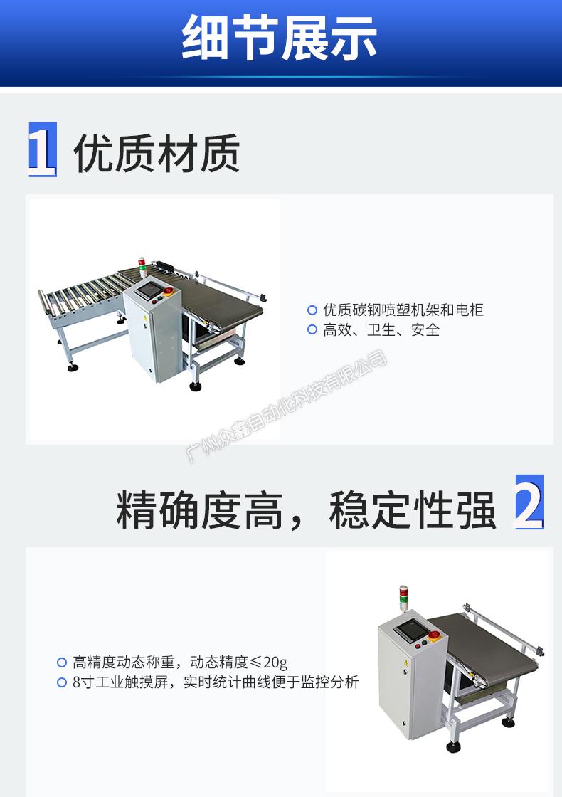 ZH-30系列自動(dòng)整箱檢重秤為高精度動(dòng)態(tài)稱重而設(shè)計(jì),源于先進(jìn)的高速采樣技術(shù)和動(dòng)態(tài)濾波模型、完美的達(dá)到了客戶對(duì)產(chǎn)品高精度的要求。ZH-30系列自動(dòng)整箱檢重秤可以輕松集成到現(xiàn)有生產(chǎn)線,對(duì)每一個(gè)產(chǎn)品進(jìn)行稱重測(cè)量,剔除不合格品,確保產(chǎn)品質(zhì)量100%合格。