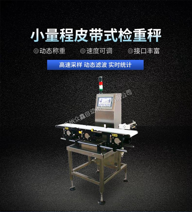 ZH-2000系列在線小包檢重秤為高精度動態(tài)稱重而設計,源于先進的高速采樣技術和動態(tài)濾波模型 ,完美的達到了客戶對產品高精度的要求。ZH-30系列在線小包檢重秤可以輕松集成到現(xiàn)有生產線,對 每一個產品進行稱重測量,剔除不合格品,確保產品質量100%合格。