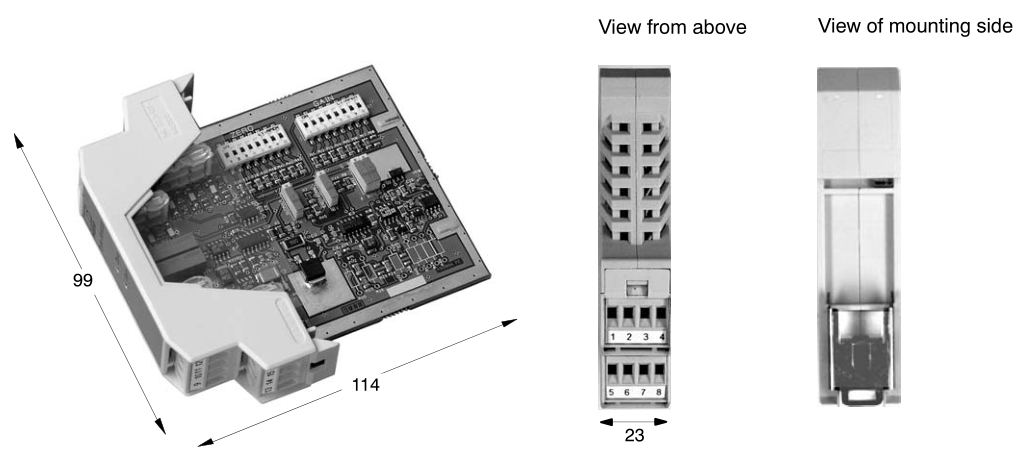 可以通過(guò)標(biāo)準(zhǔn) DIN 支撐導(dǎo)軌安裝(EN 50022 標(biāo)準(zhǔn)).