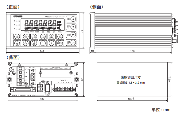 日本尤尼帕斯(unipulse)F701C稱重儀表外觀尺寸