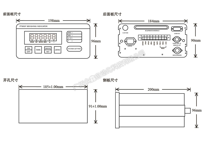 三、PT650F電子稱重儀表產(chǎn)品尺寸