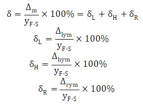 式中,?m—測量范圍內(nèi)允許的最大基本誤差,yF?S是輸出滿量程,δL是線性度,即非線性誤差,δH是遲滯,δR是重復(fù)性。