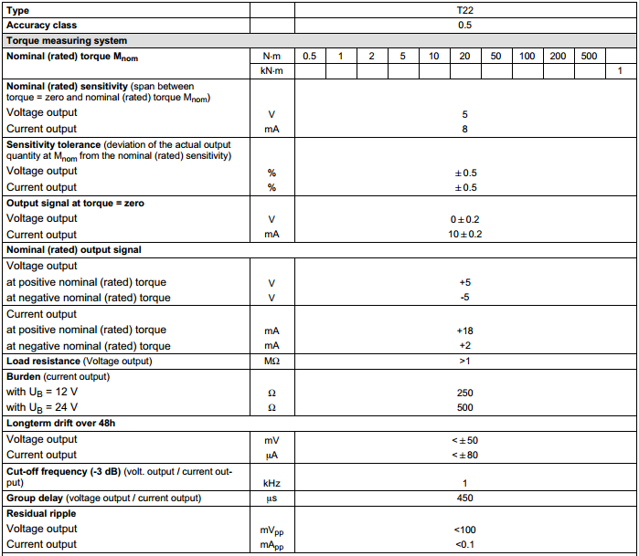 德國HBM扭矩傳感器 T22系列相關(guān)型號:T22/0.5Nm,T22/1Nm,T22/2Nm,T22/5Nm,T22/10Nm,T22/20Nm,T22/50Nm,T22/100Nm,T22/200Nm,T22/500Nm。